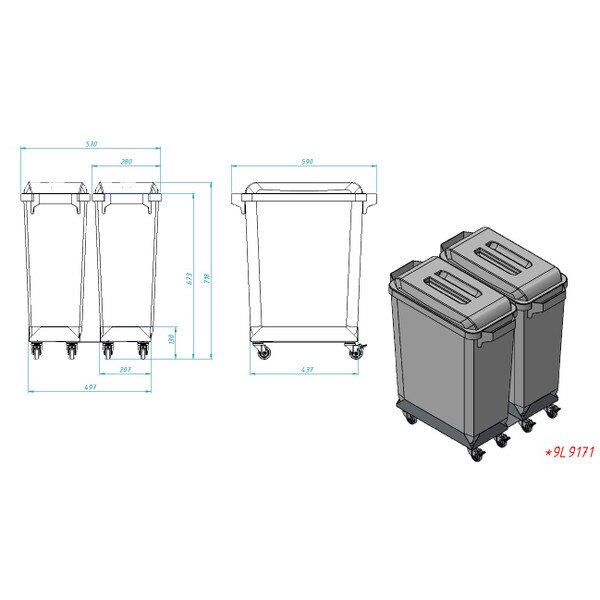 Dayton JA120R RST -jäteastiavaunu jäteastioilla 60L & 60L