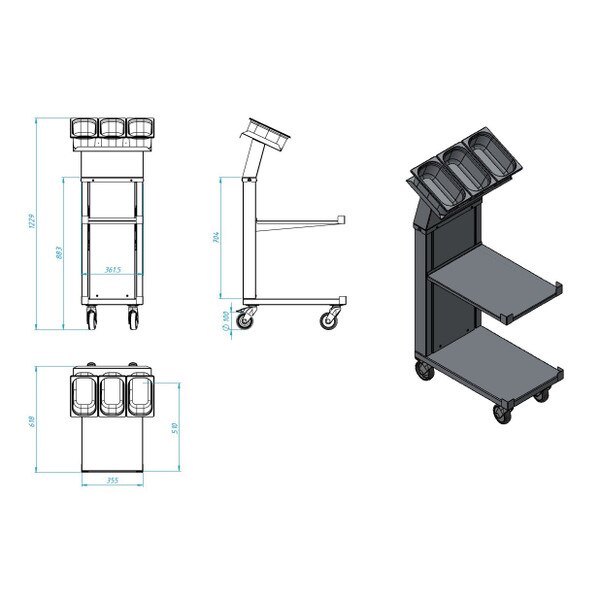 Dayton RST -tarjotinvaunu aterintelineellä, 355X600X1000mm